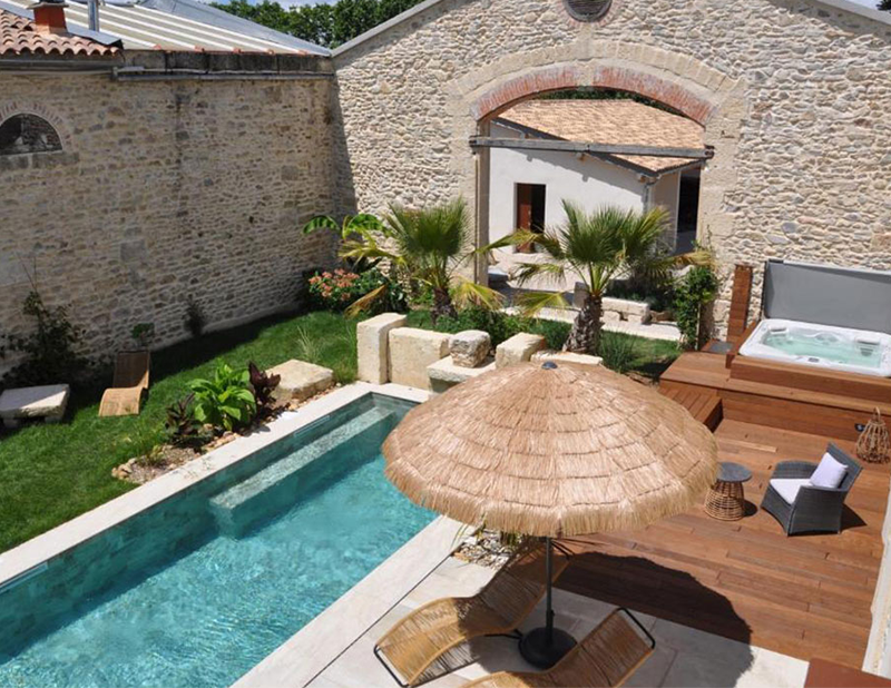 The achievement of a lifetime's work, Fanfan and Michel have created a true haven of peace in their former family wine cellars, combining Camargue authenticity and a tropical spirit that will invite you to relax in a Bali stone pool with fountains, surrounded by exotic plants, and a private Jacuzzi.